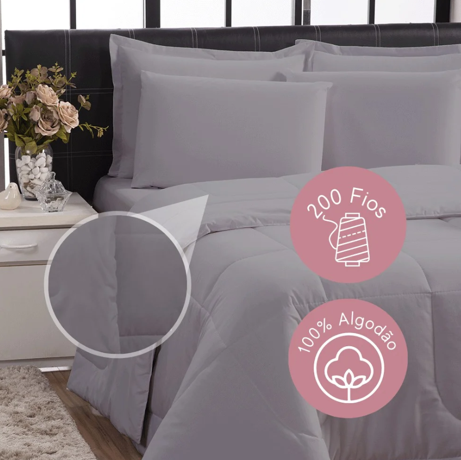 Kit Edredom Italiano 6 Peças 200 Fios 100% Algodão Casa Dona
